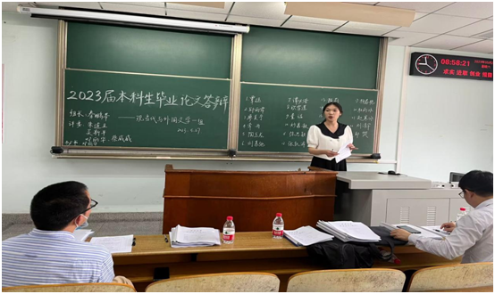 经过大半天的陈述与问答,现当代与外国文学教研室2023届本科毕业生论文答辩会圆满结束。经过评委打分和答辩组的讨论,参加此次答辩的46名本科毕业生全部顺利通过毕业论文答辩。其中,决定推荐陈若男、欧雪莲参加学院本科生毕业论文争优答辩。本次答辩工作有效地检验了毕业生大学四年的知识能力水平和专业素养,充分展现了我院2023届中文本科毕业生的精神风貌,也为我院提高本科生毕业论文质量提供了持续改进的方向。