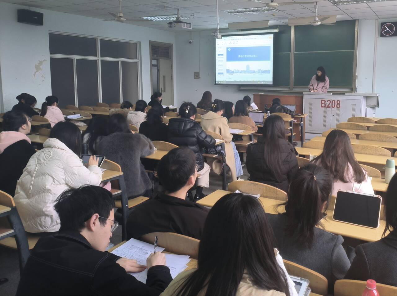 答辩会上,同学们从研究意义、论文框架、研究思路、主要内容、研究结果和创新点等方面进行了陈述。答辩委员会根据每位同学的论文进行点评与提问,并就如何进一步完善论文提出具体意见和建议,同学们就老师提出的问题与建议做了认真记录。