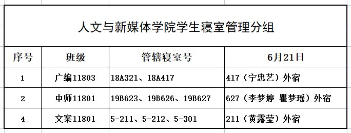 6月21日,我院组织学生干部对18、19级的宿舍进行每日寝室安全检查,现将查寝结果公布如下: