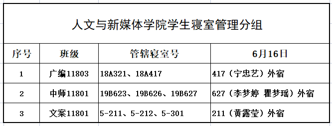 6月16日,我院组织学生干部对18、19级的宿舍进行每日寝室安全检查,现将查寝结果公布如下: