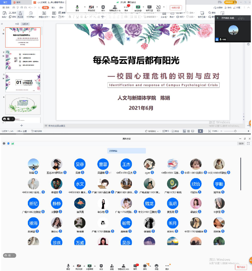 图3 2021年6月11日:2017级本科生、2018级研究生开展心理骨干培训(线上)