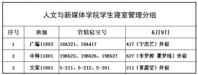 6月9日,我院组织学生干部对18、19级的宿舍进行每日寝室安全检查,现将查寝结果公布如下: