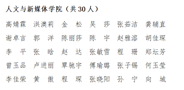 优秀本科毕业生候选人名单