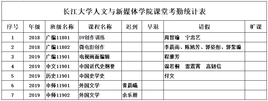 4月23日,我院组织学生干部对18、19、20级30个班的21门课程进行56次课堂考勤,100%到课率49次,现将考勤结果公布如下: