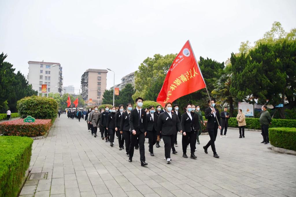 (通讯员 鄢宇航)4月4日清明之际,为了弘扬先烈的崇高精神和优良革命传统,激励和警示我们珍惜革命先烈用鲜血和生命换来的安定和谐的美好生活,坚定高举旗帜跟党走中国特色社会主义的理想信念,我院同学校一行于荆州革命烈士陵园组织开展“缅怀革命先烈 传承红色基因”清明祭扫主题教育活动暨“人文学子心向党”党史学习第一课活动。50名学生代表共同在烈士墓前追思英烈、慎终思远。