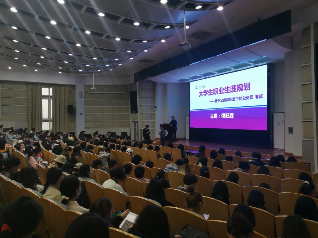 讲座伊始,侯教授借“渡鸦”告诉大家,要做一名“运筹专家”,规划好自己的未来。侯老师从公务员考试出发,详细的为同学们介绍了其报考流程。并和同学们一起回顾考试真题,让在座同学更深刻的了解到公务员考试到考什么,作为备考人员,需具备哪些能力与素养。公务员考试与当下社会发展密切相关,要时刻关注时政,储备相关整治政策理论,养成对社会现象的观察思考。在面试环节,侯老师通过讲述一位同学的真实面试经历,引导我们在面试时不要过于紧张,注意训练自己的口语表达能力。
