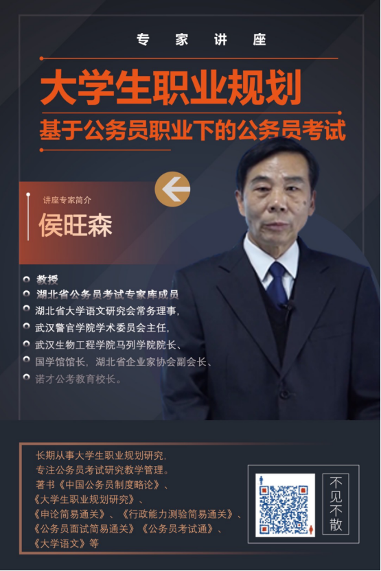 侯旺森,教授,湖北省公务员考试专家库成员,湖北省大学语文研究会常务理事,武汉警官学院学术委员会主任,武汉生物工程学院马克思主义学院院长,国学馆馆长,湖北省企业家协会副会长,诺才公考教育校长。