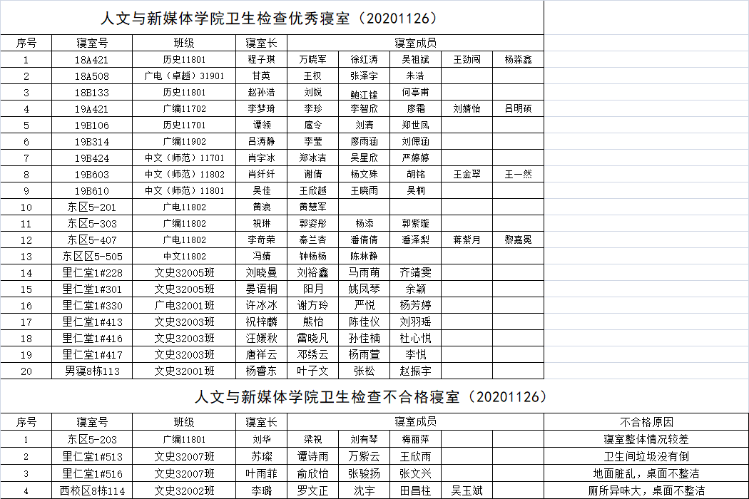 伟德国际victor·1946源自2020—2021学年上学期第十三周宿舍安全卫生检查情况通报