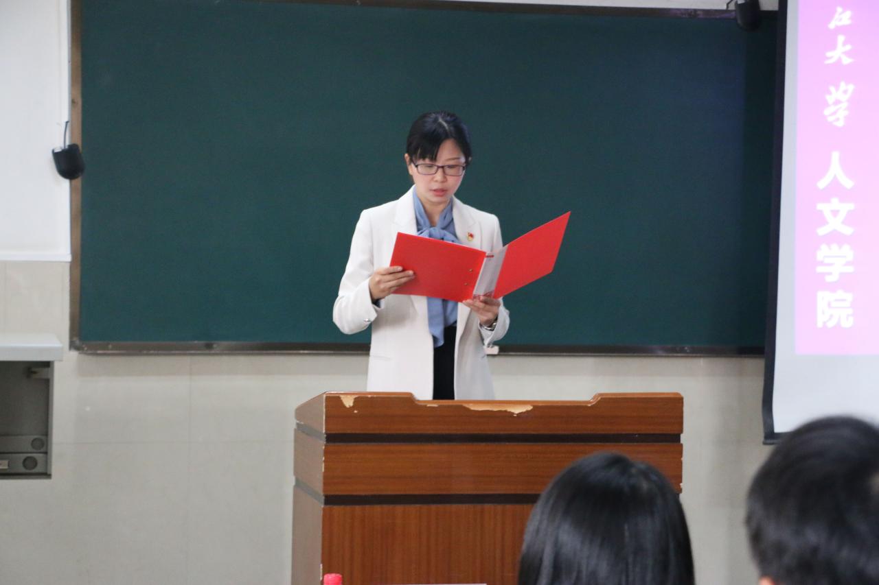 最后,院党委书记杨克非老师发表了讲话并为“鸿志”班学员讲授第一课。他从三个方面表达了对同学们的期望,首先,作为一名学生干部,要清楚自己的定位及作用,做好上传下达工作,充分发挥纽带作用,坚持认真负责的态度,当好老师与同学们之间的桥梁。其次,要做一名思想进步,意志坚定的学生干部,讲述了学习与品格的重要性,教导我们不仅要提升个人的素质与境界,做到团结同学,严于律己;更要做到以学为先,全面发展,注重学习与工作的平衡关系。最后,希望所有学生干部将工作与学院特色结合起来,在抓好学风建设的同时,更要注重优良传统的传承,办好学院特色活动,并不断开拓创新,打造人文学院特色品牌。