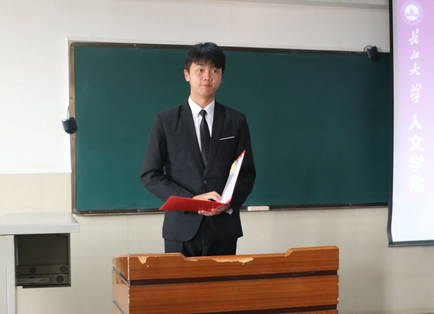 接下来,由文史32004班刘铭松同学代表“鸿志”班全体成员发言。他倡导全体学生干部们做到:竭尽全力,牢记职责;认真负责,团结力量;锐意创新,不断进取;共同谱写“为同学服务”的新篇章。