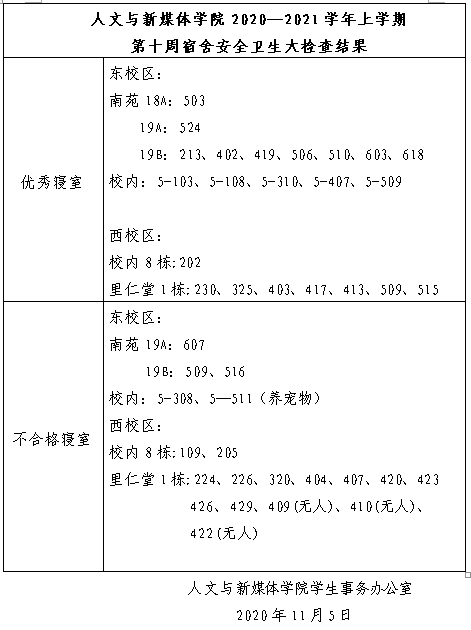 伟德国际victor·1946源自2020—2021学年上学期第十周宿舍安全卫生检查情况通报