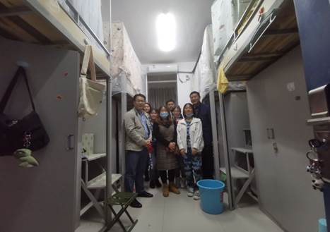 何院长和胡书记每走进一间新生宿舍,都会询问问他们生活上是否习惯,有什么困难或者问题,未来的目标等。何院长叮嘱同学们提醒同学们时刻要注意安全问题;舍友之间要团结,互帮互助,以尽早适应大学生活;同时要珍惜美好时光,养成主动学习的习惯等。此外,何院长和胡书记还同正在与新生视频聊天的家长进行了沟通,了解学生家长的意见。