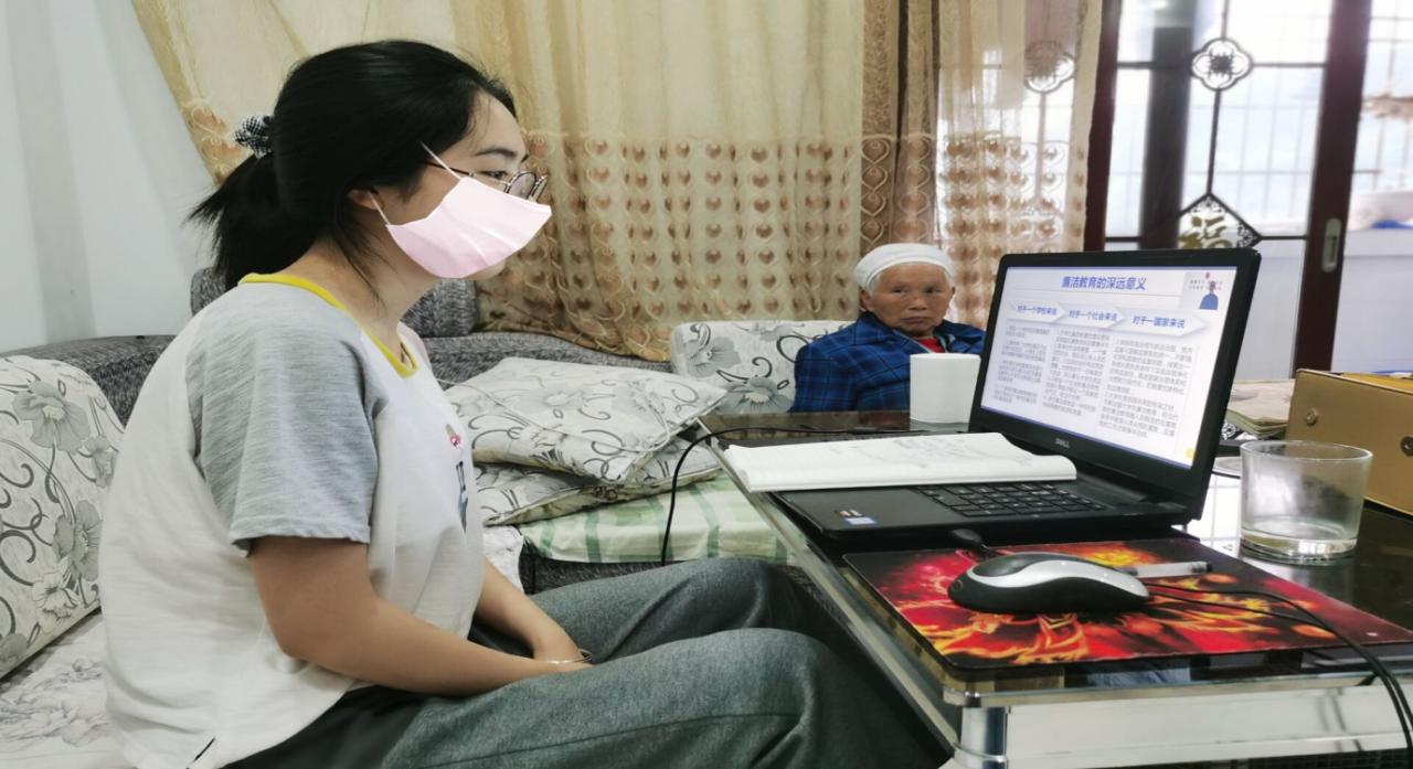 接下来主持人将PPT的画面切换到“共抗疫情,爱国力行”主题页。她用PPT上通俗易懂的漫画向大家宣传了许多预防病毒的小技巧。最后的互动环节,同学们也积极回答相关问题,踊跃分享目前生活情况。大家表明在疫情期间会听从国家政府领导以及学校相关指示,关注自身身体健康的同时,不信谣也不传谣。