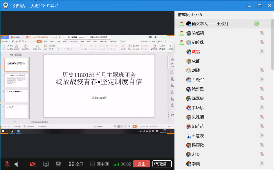 中文(师范)11801团支部在团支书丰钰辰同学的主持下,在线上召开了本次主题班级团会。