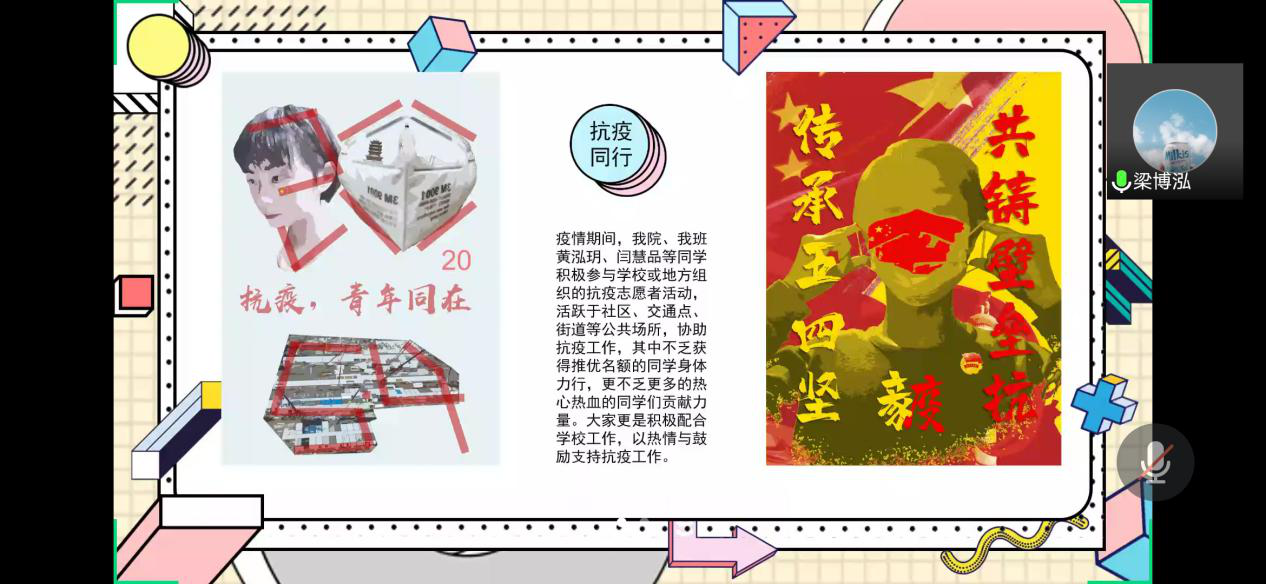 会议深入学习了以习近平同志为核心的党中央对疫情防控工作的坚定信心、坚强领导和英明决策,宣讲长大典型青年故事,并且对五四精神的传承进行了网上互动。