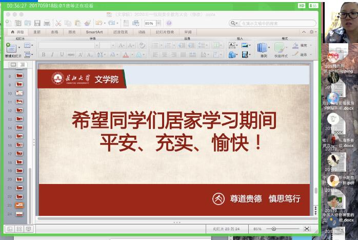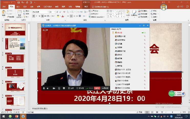 为做好“后疫情时代”本科生的教育管理工作,按照学工部统一要求,我院于4月27日—29日,以班级为单位,召开五一假期安全教育大会。会议由各年级辅导员、班主任主持,全体学生及学生家长通过雨课堂、腾讯会议、QQ视频等方式参加了大会。