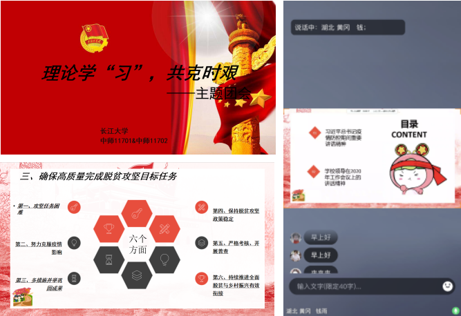 为了加强同学们对习近平总书记在新冠肺炎期间发表的重要讲话的学习和学校领导在2020年工作会议上的讲话精神的了解,中文(师范)11802团支部在线上召开了主题团会。