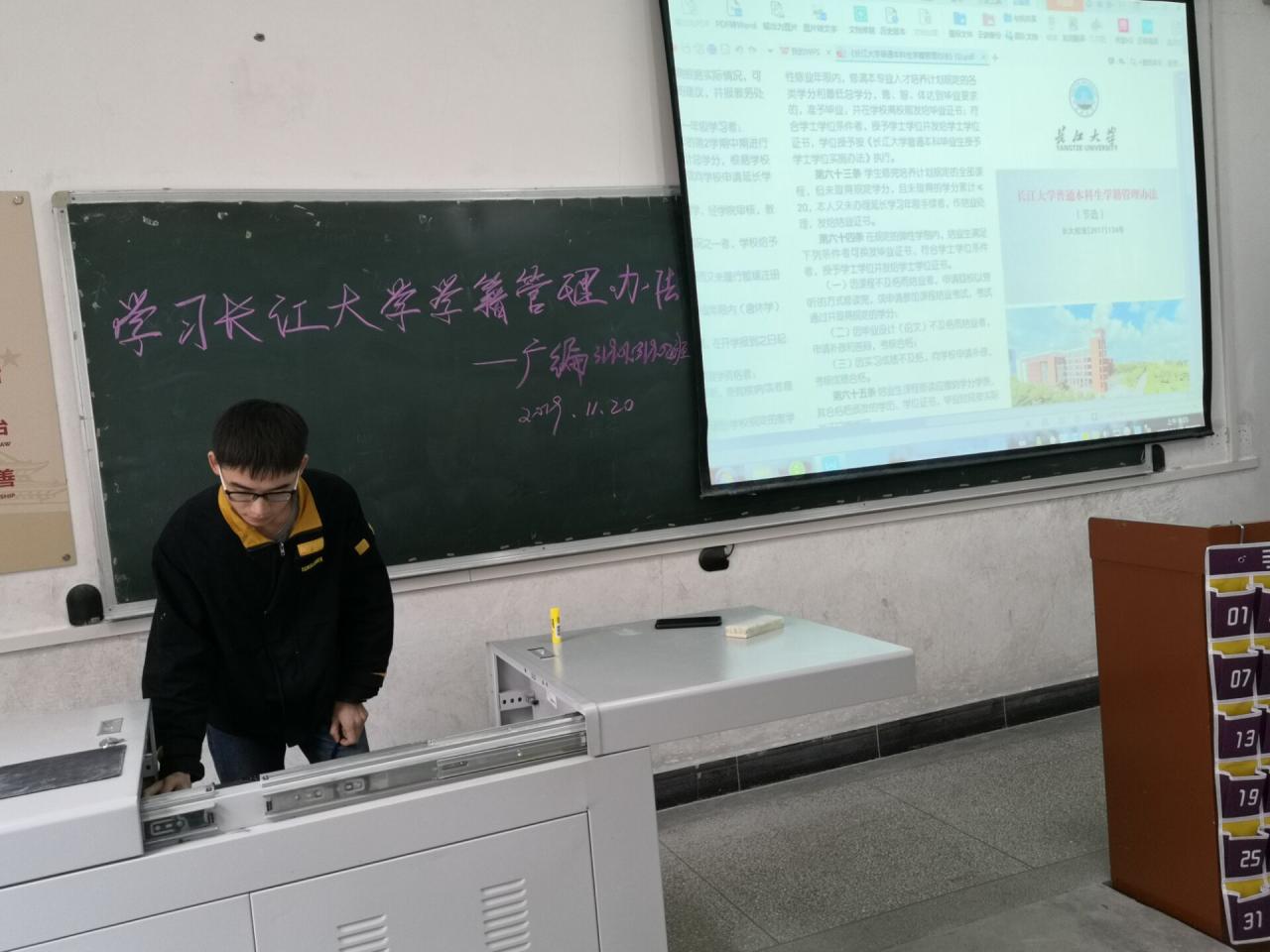 2019年11月24日星期日晚19:00,文史31905班于7教301开展了关于《伟德国际1946普通本科生学籍管理办法》的宣传教育活动。
