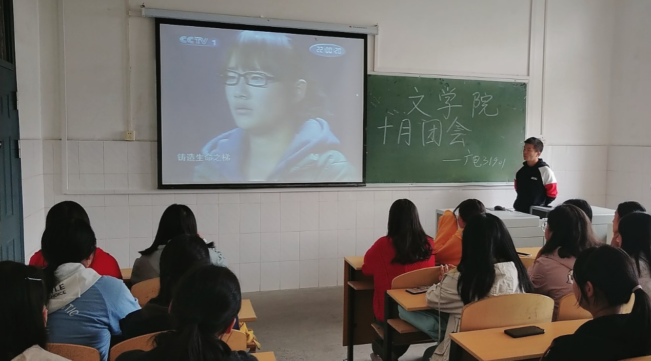 文史31901班团会由一班薛雯昕同学以及二班余乐妍同学共同主持。以“青春向党,建功新时代”为主题,以向“10.24”英雄事件为主线,开展主题团会。