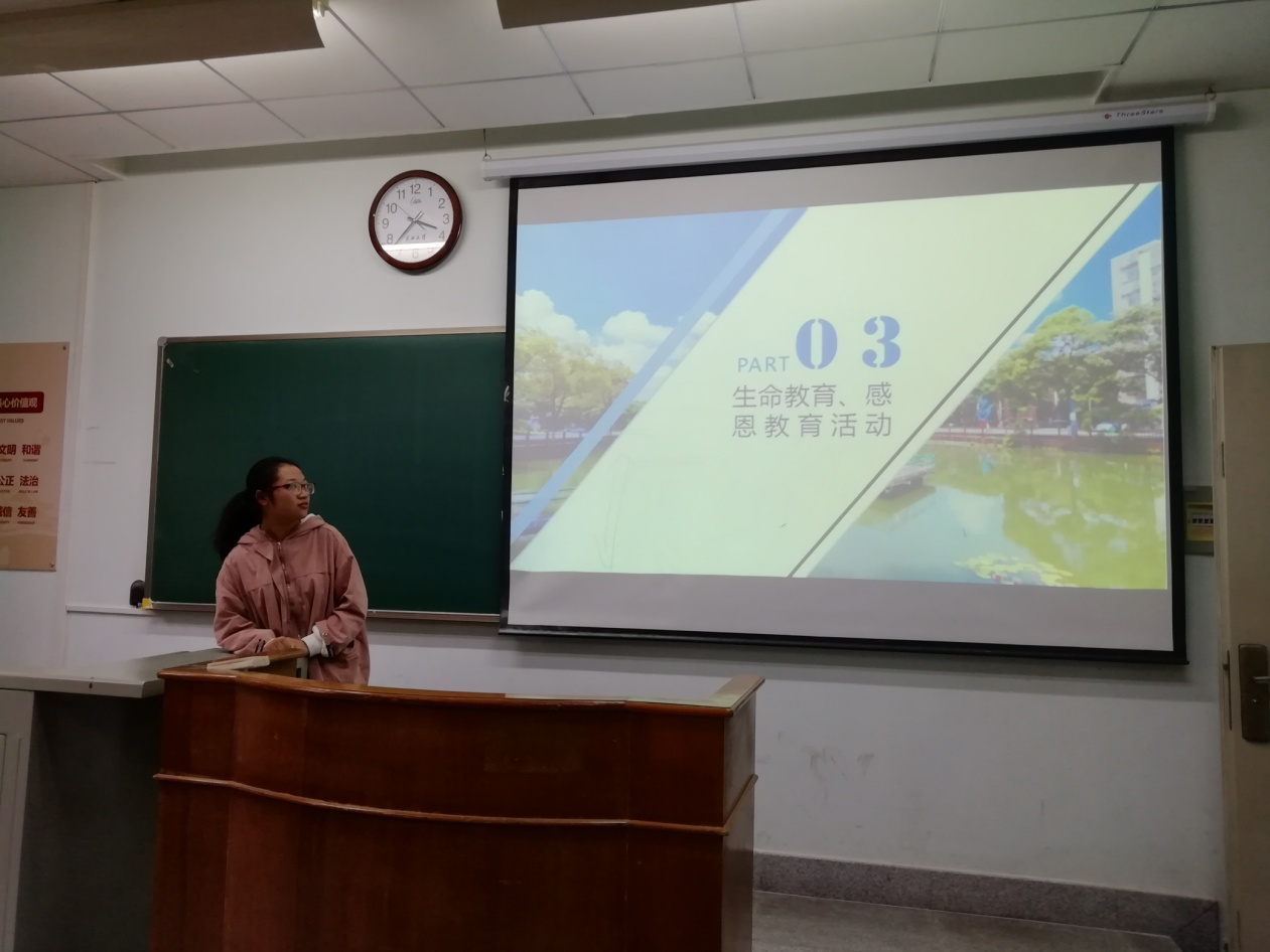 会议的第三部分为“敬畏生命,懂得感恩,防患于未然”,列举了大学生校园常见的危险活动,比如火灾,交通安全事故,溺水,防骗,禁酒预防酗酒,防性骚扰性侵害等,让同学们注意到这些真实存在对自己有影响的行为,提高危机意识,远离危险活动,做好安全措施。
