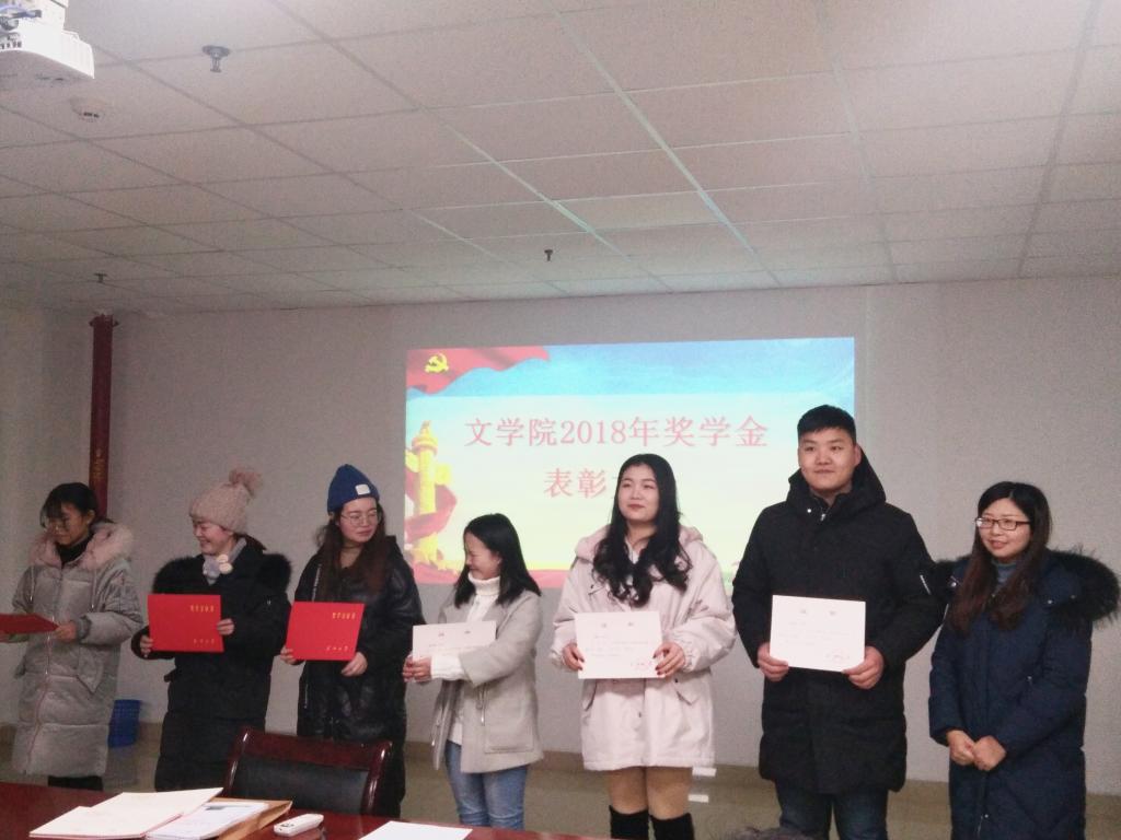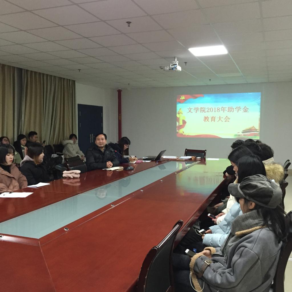 为进一步贯彻国家资助政策、促进我院资助育人工作,1月10日晚上,我院于文科大楼705会议召开文学院2018年度奖学金表彰大会和助学金教育大会,文学院党委书记杨鑫,学工办主任严实,辅导员李博、李永琪参加了大会。