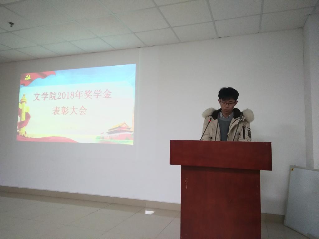 在大会上,首先由辅导员李永琪介绍了2018年度文学院奖助学金评选工作的基本情况,随后由严实老师宣读了表彰文件,依次为文学院2018年度国家奖学金、伟德国际1946奖学金、德贵奖学金、橘颂奖学金获得者颁发荣誉证书。紧接着,优秀学生代表上台发言,其中国家奖学金获得者黄宪成同学在发言中对自己这一年来的学习和工作情况做了总结,并鼓励在座各位同学勤于奋斗,不忘初心。国家助学金受助代表黄海雯同学在发言中说到要常怀感恩之心,向给予自己关心和帮助的国家、学校与学院表示深切感谢。