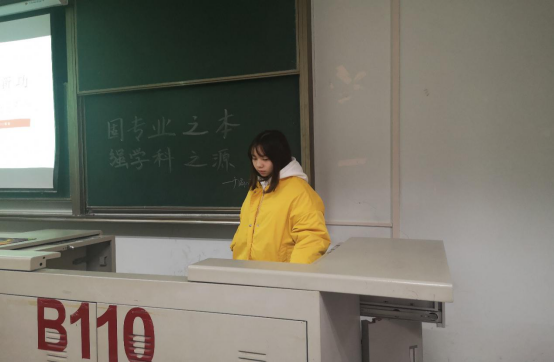5. 广编11701班主持人在团会中讲解谢红星校长的“固专业之本,强学科之源”的这一学习内容,引发同学们对于本专业如何建设,伟德国际1946如何建设做出深度思考。