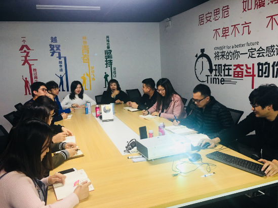 严实老师参观了花印运营中心的演播间,了解、试用了部分花印产品,参加了运营中心2018年第四季度销售业绩中期总结会。