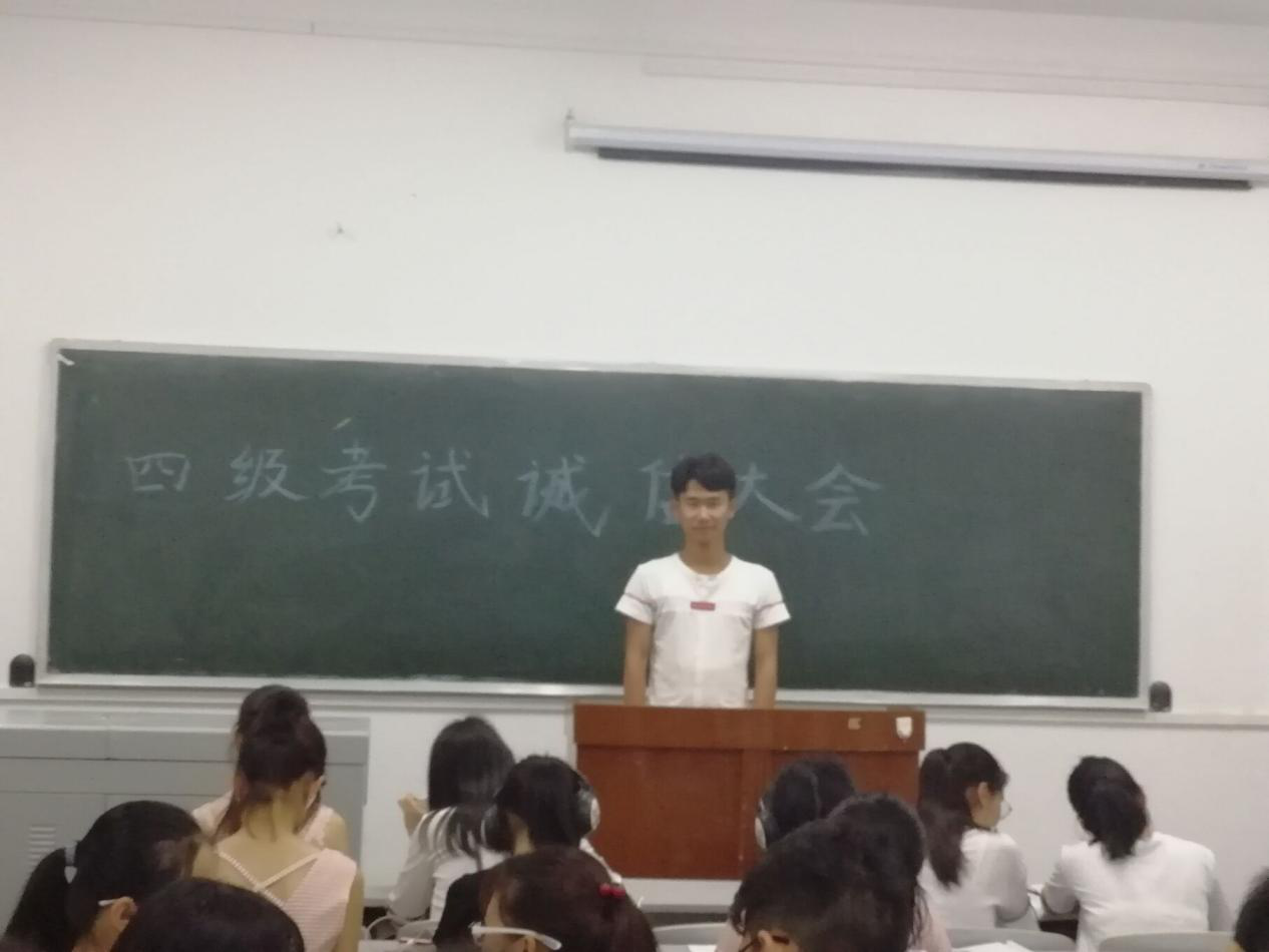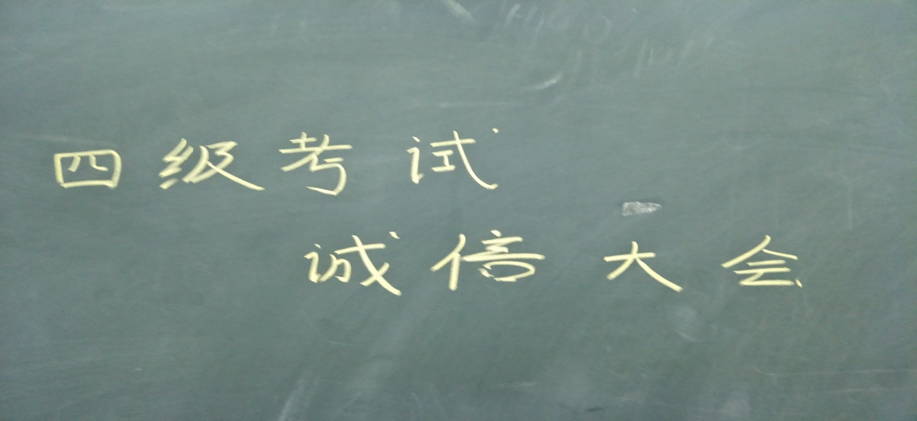 本次大会,既使大家对四级考试得重视,也强调了诚信在考试中的重要性。让大部分同学学习到诚信考试,大家受益匪浅。大家也承诺诚信考试,诚信做人,考出自己的真实水平,绝不弄虚作假。