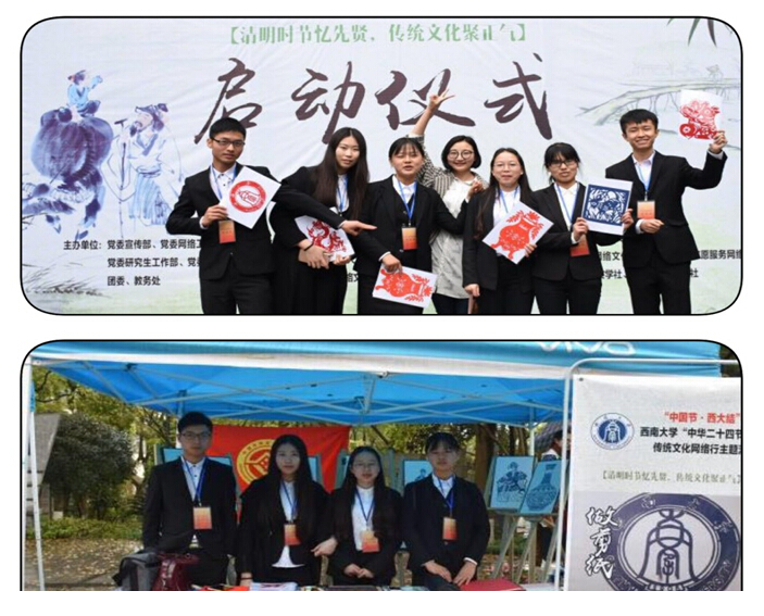 (通讯员 王华龙 )3月30日上午,以“清明时节忆先贤,传统文化聚正气”为主题的清明节活动在西南大学校庆纪念园隆重举行。伟德国际1946的长江非遗学社一行7人应邀全程参与,并负责其中的习俗体验之剪纸展区。