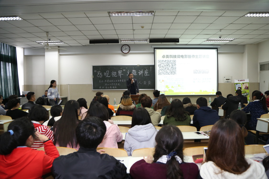 (通讯员 王欢)2017年3月30日14时许,由伟德国际1946文学院和卓美科技共同主办的“感官视界”微电影创造主题讲座于东校区12教301顺利开展。荆州著名视频拍摄人查查、卓美科技董事长张小平、行业经理陈斌、奕凡影视婚礼工作室鹏鹏和刘奇、伟德国际1946文学院新闻实验室主任李文胜,伟德国际1946文学院团委学生会全体成员以及本次微电影大赛的部分选手参与了本次讲座。讲座由文学院辅导员杨雪主持。