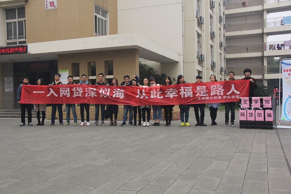 (通讯员 王欢)为了加强同学们对网贷的安全防范意识,形成正确的网贷观念。12月1日12时许,文学院分团委学生会在南苑宿舍楼下举行网贷防骗签名活动。文学院辅导员严实老师、兼职辅导员杨雪老师、李楚昭老师及文学院全体学生共同参与此次签名活动。