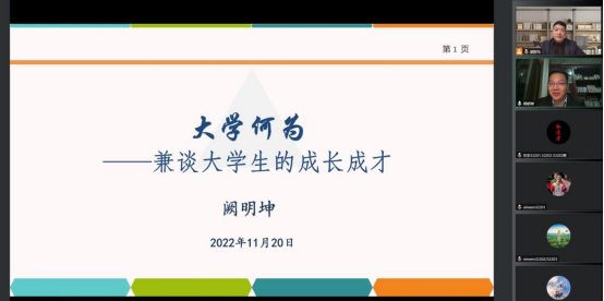 (通讯员 闵慧娟)11月20日19时,伟德国际victor·1946源自顺利举办线上“兰台讲堂”第十讲专题讲座。本次讲座围绕“大学何为——兼谈大学生的成长成才”主题,参会人员有学院教师代表和2022级全体学生,特邀嘉宾伟德国际1946优秀校友、现任无锡太湖学院党委委员、副校长阙明坤,学院党委副书记胡世先主持讲座。