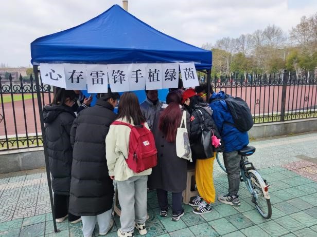 本次活动主要以雷锋知识问答的形式展开,在万品汇前设置摊位。活动负责人前期搜集雷锋相关问答题目组成题库。活动时,由现场值班人员随机抽取五道题,参与的同学进行回答,答对三道及以上即可获得一份植物种子奖励。在弘扬雷锋故事,传承雷锋精神的同时宣传绿色生态理念。