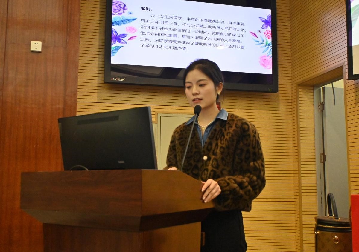 培训伊始,田华蓉老师用生动的例子切入主题,从了解心理健康、识别心理危机、心理咨询与心理治疗、正确应对心理危机:自助和助人、我校心理健康教育体系这五个方面进行讲述。