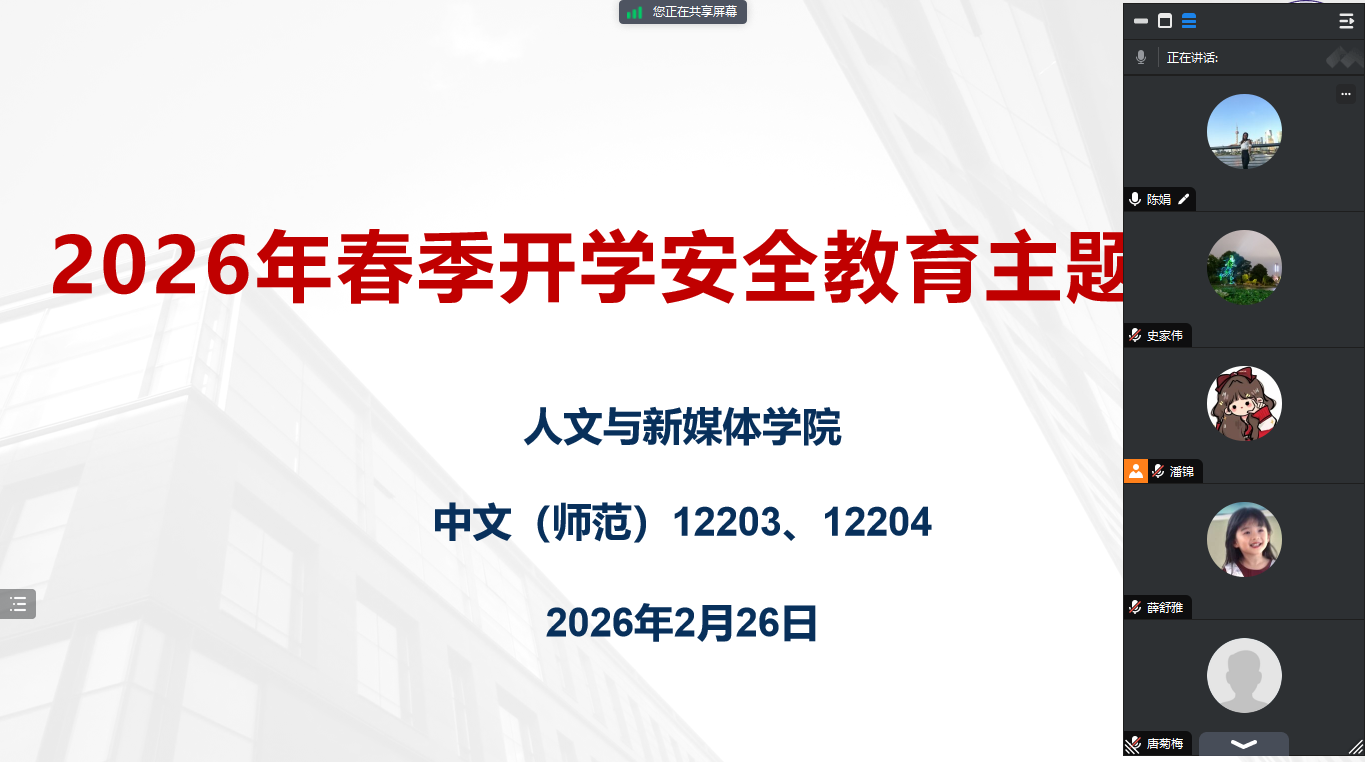 学院春季开学班主任和辅导员工作专题会议上,学院相关负责人传达了学校春季开学工作整体要求,结合学院实际对开学各项工作进行详细部署,明确班主任与辅导员的岗位职责,要求全体学工人员抓实抓细学生返校摸排、行程提醒、日常管理等工作,确保开学工作平稳有序推进。随后,学院以班级为单位实现线上返校安全教育班会全覆盖,全体辅导员、班主任全程参会。班会围绕返校工作安排、交通安全、防诈骗宣传、消防安全等核心内容展开,明确学生报到注册、提前及延迟返校审批流程,讲解出行安全、反诈 APP 注册使用、寝室及实验室防火用电等关键要点,重点强调返校途中的个人防护与行程安全,切实提升学生的安全防范意识和自我保护能力。