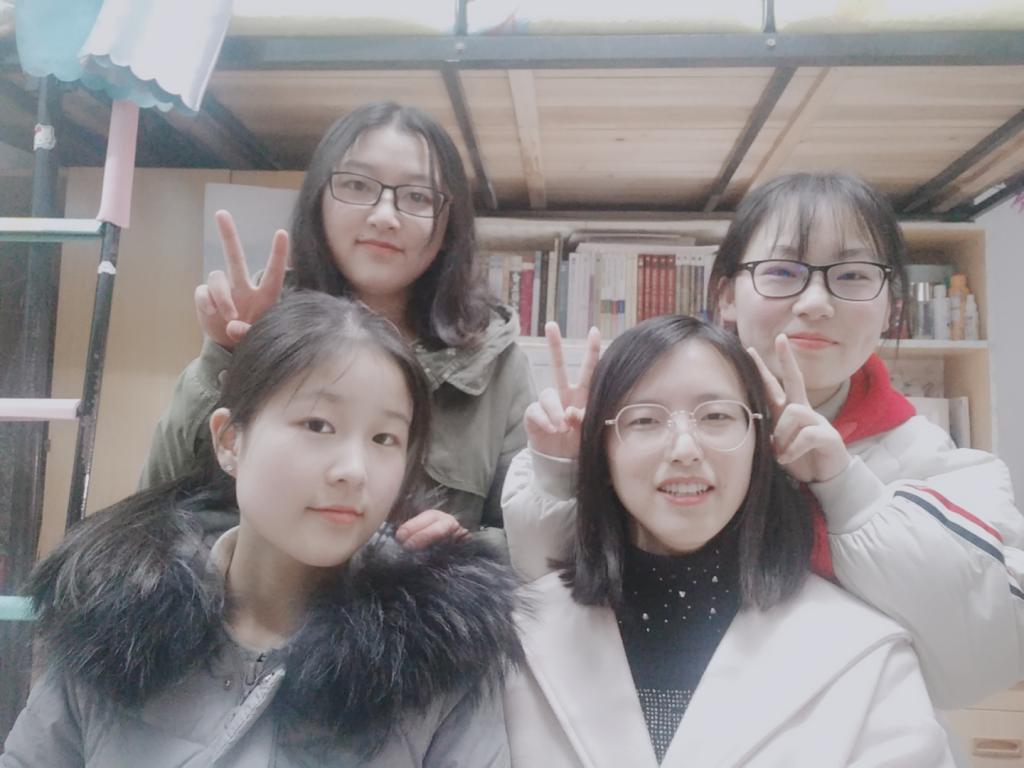在学习上面,我们可能没有多么的出色,但从不甘于落后。不逃课旷课,不迟到早退,这是我们的底线;上课认真听讲,下课及时整理笔记,这是我们的态度。对于一些其他方面的学习任务,我们都有着共同的计划。在这里,我们每一个人都是另外三个人的监督者。在这里,我们在用热情充盈这片小小天地。