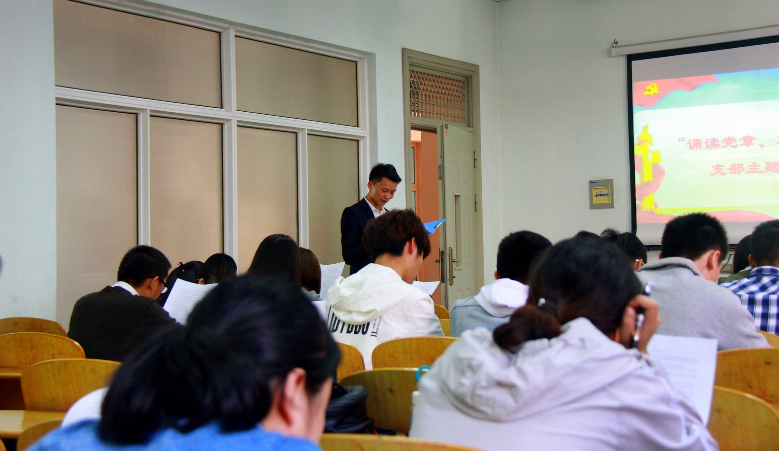 (通讯员 殷友豪)4月13日下午,文学院新闻历史学生党支部在13教B109开展了“诵读党章、加强整改”主题党日活动。新闻历史学生党支部书记陈娟以及支部党员参加了此次会议。