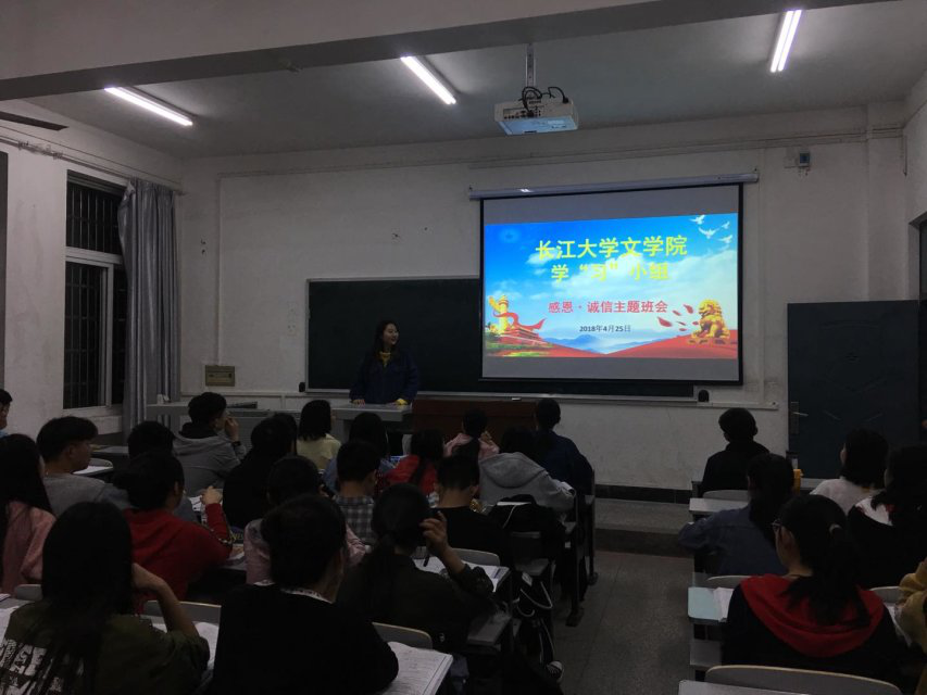 接着,各学习小组进入大一各班开展“诚信·感恩”主题班会,并由学习小组党员向大一同学进行主题PPT展示。