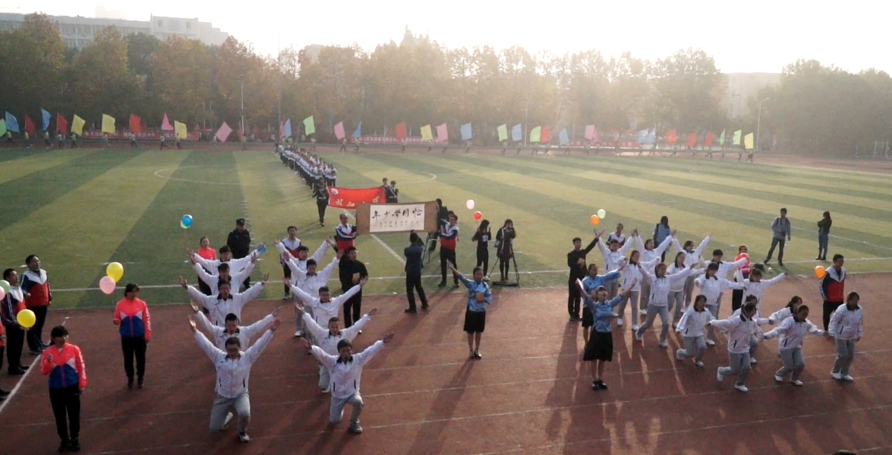 在入场式上,身着统一服装、喊着响亮口号、迈着矫健步伐的40余名老师和学生运动员方阵一起走过主席台,充分展示了文学院团结和谐、健康向上的良好精神风貌。在之后的第九套广播体操表演中,雒仁启、向会斌、严实、罗威、陈先蕾等10名老师与30名学生组成的文学院代表队跟着广播口令,齐刷刷地转身、下蹲、跳跃,步伐整齐,动作有力。