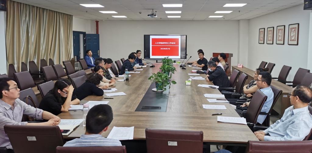 会议分为五个议题。一是通报2018级研究生毕业论文盲审情况,讨论如何把控学位论文撰写环节,提高学位论文质量。二是传达学校2022年研招任务和要求,部署我院研招计划,发动导师对接考生和兄弟院系。三是推进“百企百站”建设,为专业学位硕士的培养建设合作基地,也为学科评估打好基础。四是讨论、修订《人文学院教师招收硕士研究生资格认定办法》、《人文学院研究生导师工作条例》、《人文学院研究生参加学术会议资助管理办法》,为我院研究生工作提供制度上的保证。五是推进研究生安全与就业工作。