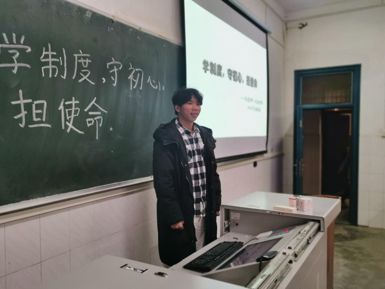 文史31902班12月“学制度,守初心,担使命”主题团会在二教成功举办。本次团会分为三部分,唱团歌,通读重要讲话,观看专家辅导报告。通过不同的活动形式,使“学制度,守初心,担使命”的理念深入人心。