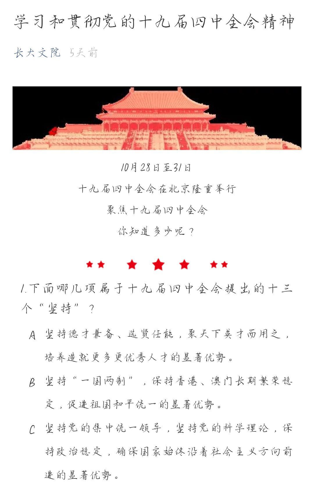 官微则采用互动问答反馈的方式进一步加深同学们对党的十九届四中全会精神的理解。鼓励同学们要将个人理想抱负同祖国的前途、民族的命运紧密联系在一起,勤学善思,知行合一,努力成长为高素质技术技能型人才,为实现中华民族伟大复兴的中国梦作出新的更大贡献。