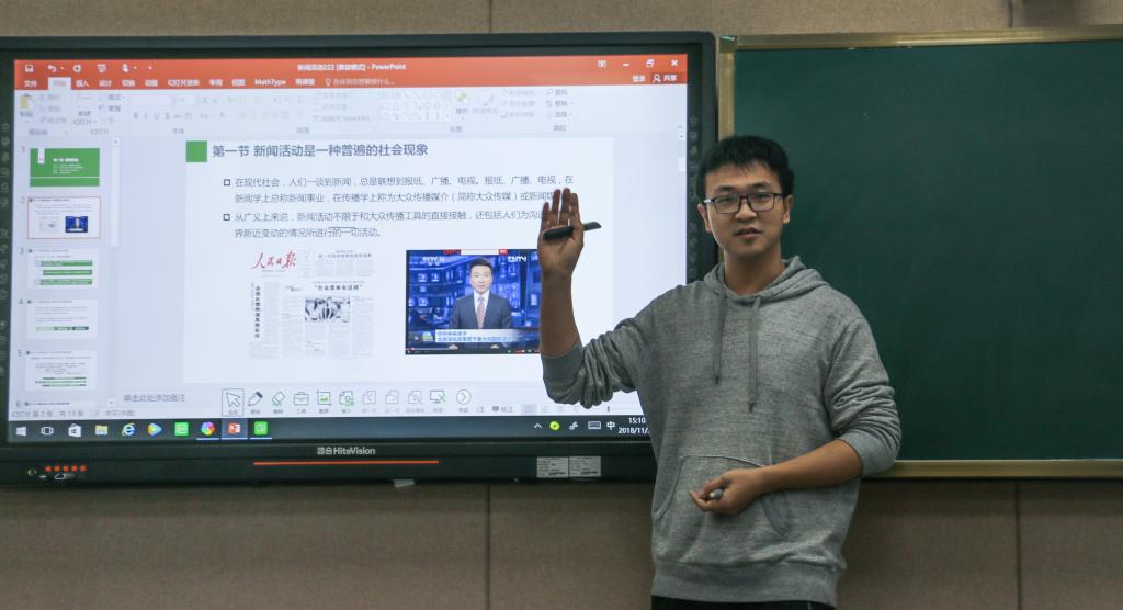 通讯员 吴莎/文 刘杨潇逸 周志凡/摄 )11月30日下午,文学院在1教309智慧教室举行了青年教师教学竞赛。院长许连军,副院长何世龙,喻频莲、朱道卫、周家洪等教师担任了本次竞赛评委。院党委书记杨鑫、校教学督导潘友刚、副院长李华平和学院部分教师观摩了本次竞赛。