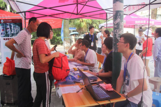 迎新期间,文学院的志愿者们积极热情,所有迎新志愿者们从4日便开始筹备迎新方案、领取物资、布置迎新点。
