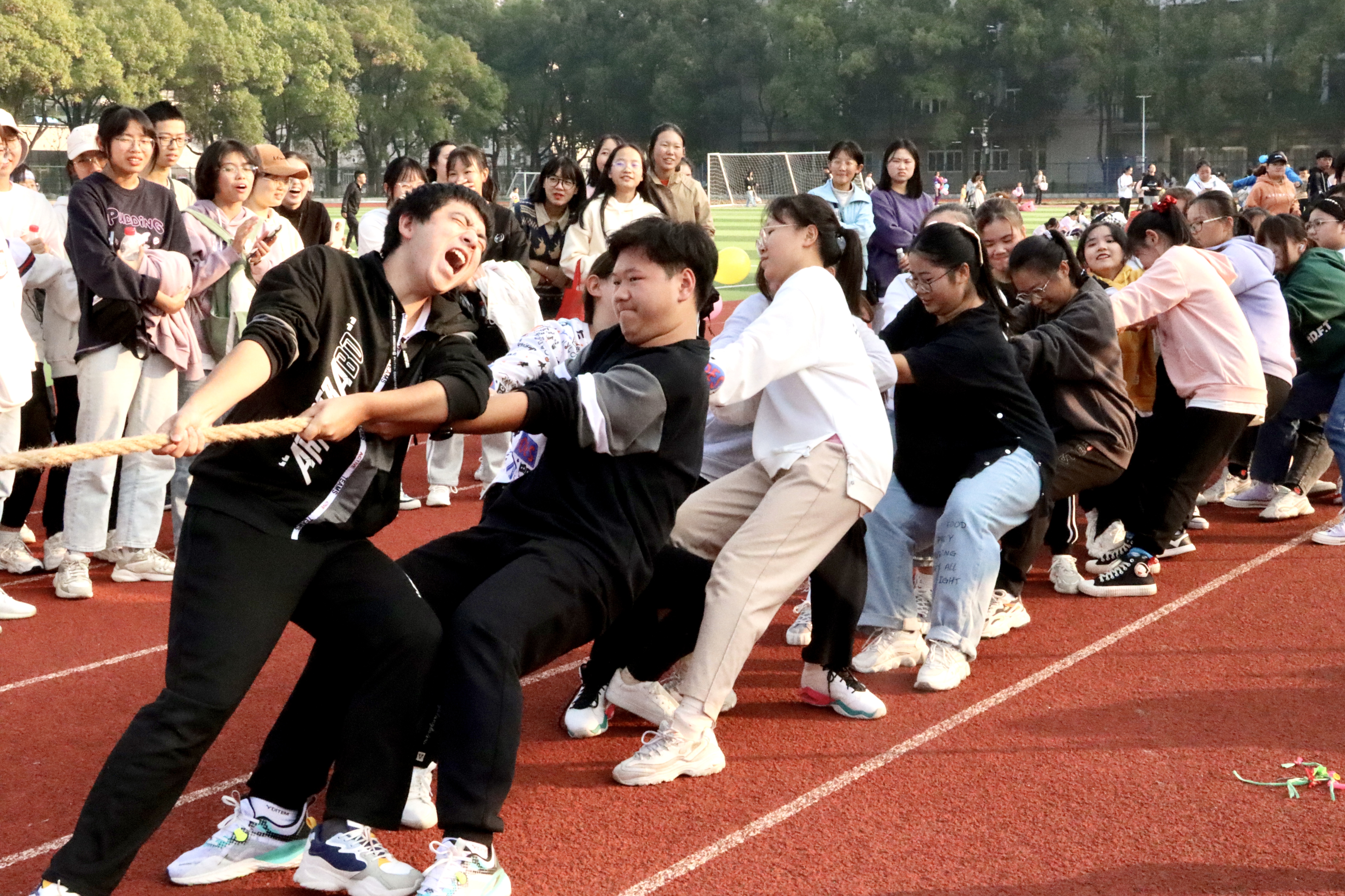 此次运动会共设置“扔沙包”“踩气球”“摸石头过河”“跳长绳”“拔河”“接力跑”等六个项目。师生们默契配合,相互鼓励,共同完成各个项目的比赛。活动从下午2点持续到6点,现场气氛热烈。