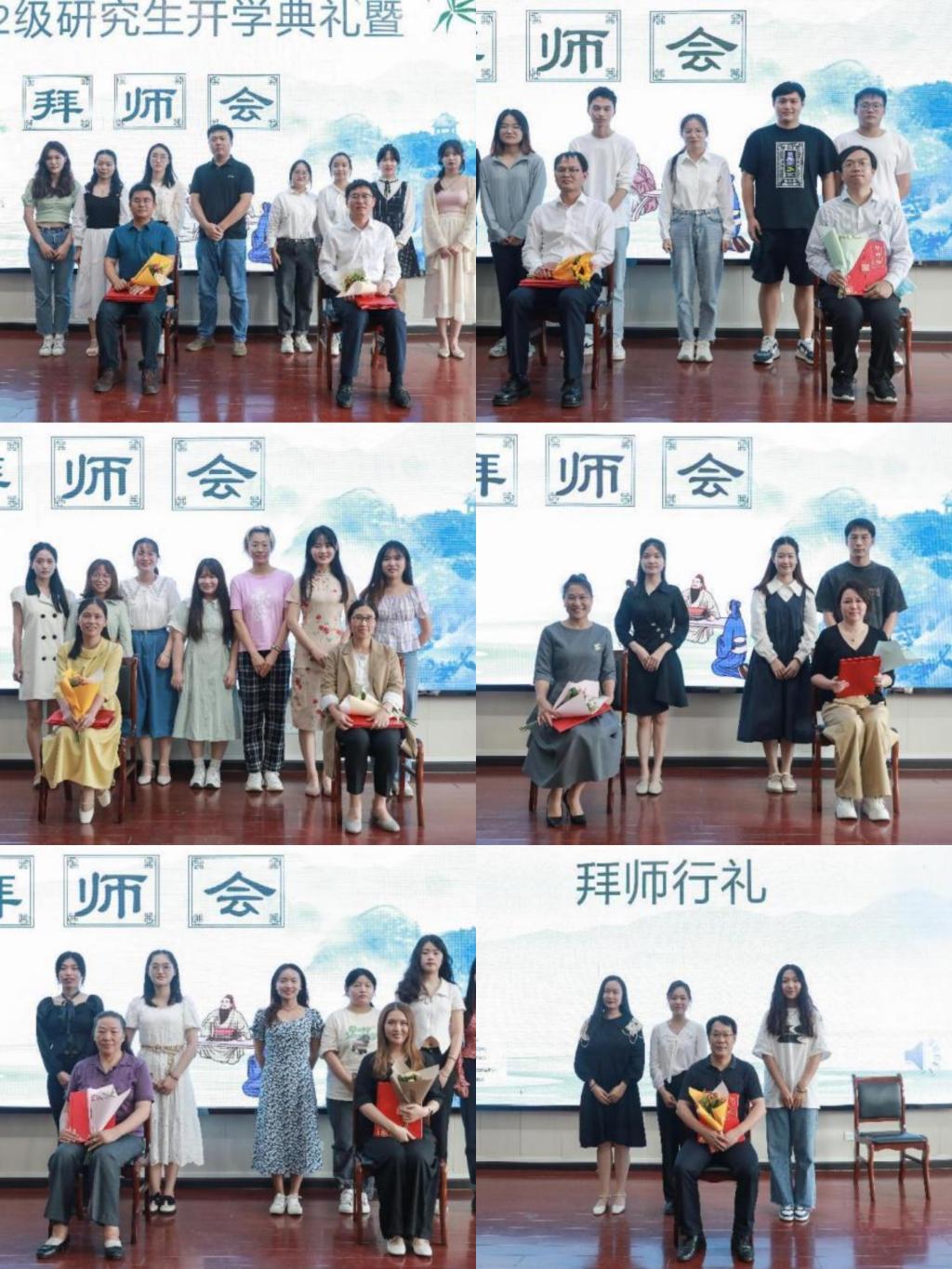 随后,迎来了庄重的拜师礼环节。全体研究生新生依次向导师献花,递交拜师贴,鞠躬,行拜师礼,并与导师合影留念。拜师仪式在庄重而又温馨的气氛中结束。