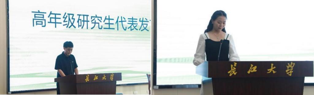 高年级研究生代表宋毅彪向新生分享了自己研究生阶段的学习经验,鼓励学弟学妹们奋力拼搏的同时以积极向上的态度面对失败,明确自己的学习目标,做好学业规划。