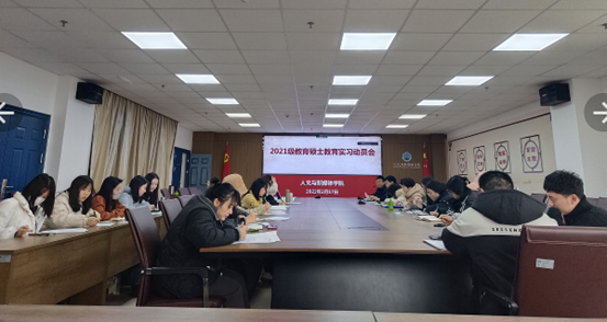 (通讯员 宋毅彪)2月17日下午,我院于文科楼705会议室举行了2021级教育硕士教育实习动员大会。副院长杨家海、党委副书记胡世先、实习指导教师李义芳、辅导员陈娟及32名(其中8人线上参加)2021级全体教育硕士参加会议。