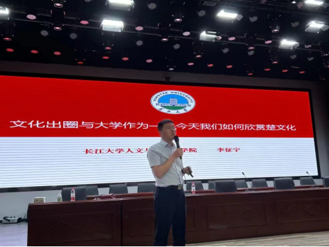 在该校图书馆报告厅,副院长李征宇为近300名师生作了题为《文化出圈与大学作为——今天我们如何欣赏楚文化》的讲座。讲座立意新颖,内容丰富,激发了师生对楚文化的浓厚兴趣。